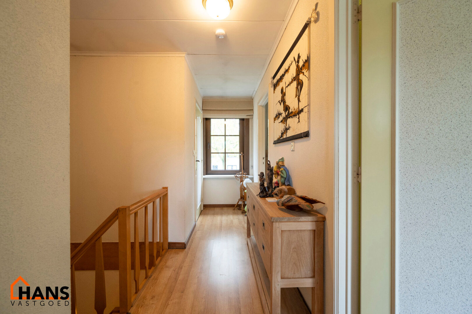 Via de inkomhal kom je in de lichtrijke woonkamer met aansluitende keuken en veranda die uitkijkt op de ruime, zuidgerichte tuin — ideaal voor wie houdt van rust en privacy. Verder beschikt de benedenverdieping over een aparte garage met automatische poort en een gastentoilet.