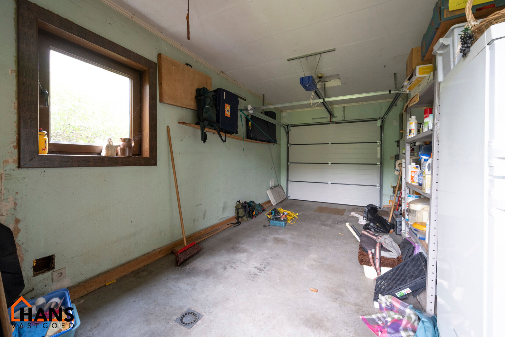 De woning beschikt bovendien over een zolderruimte, bereikbaar via een luik, die extra bergruimte biedt.