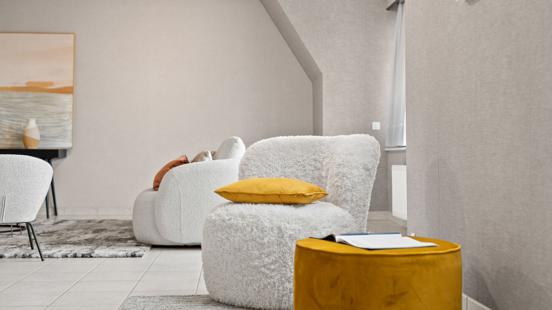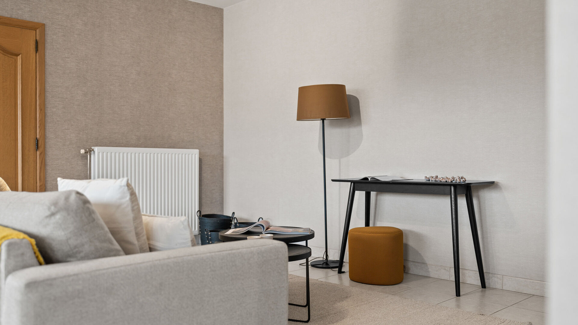 Via de ruime inkomhal, uitgerust met een veiligheidsdeur, betreed u het appartement. Deze inkomhal zorgt voor een aangename ontvangst en een duidelijke scheiding tussen leef- en nachtgedeelte.