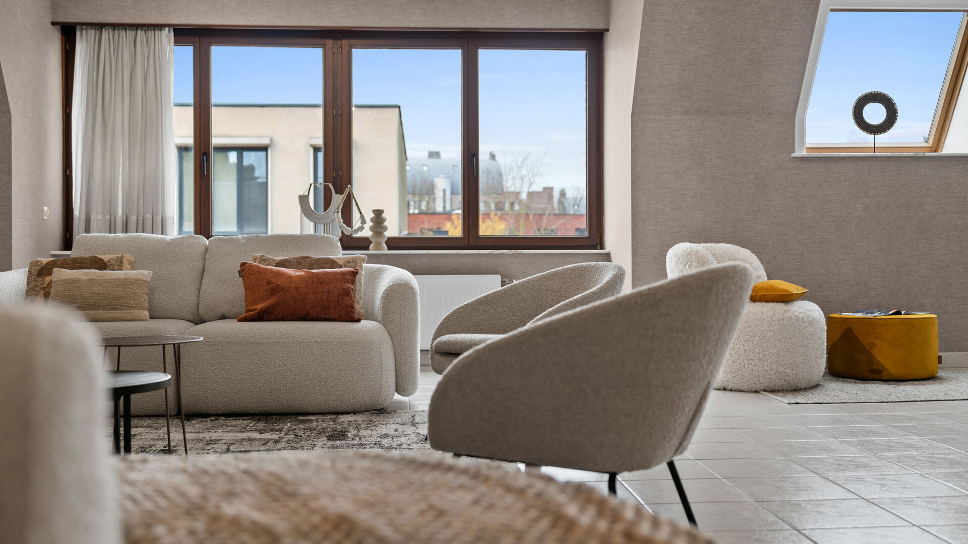 De zeer grote en lichtrijke woonkamer vormt het hart van de woning. Dankzij de royale afmetingen en open indeling zijn er tal van mogelijkheden voor een comfortabele zithoek en een ruime eetplaats. Grote raampartijen zorgen voor een overvloed aan natuurlijk licht en een open, aangenaam woongevoel.